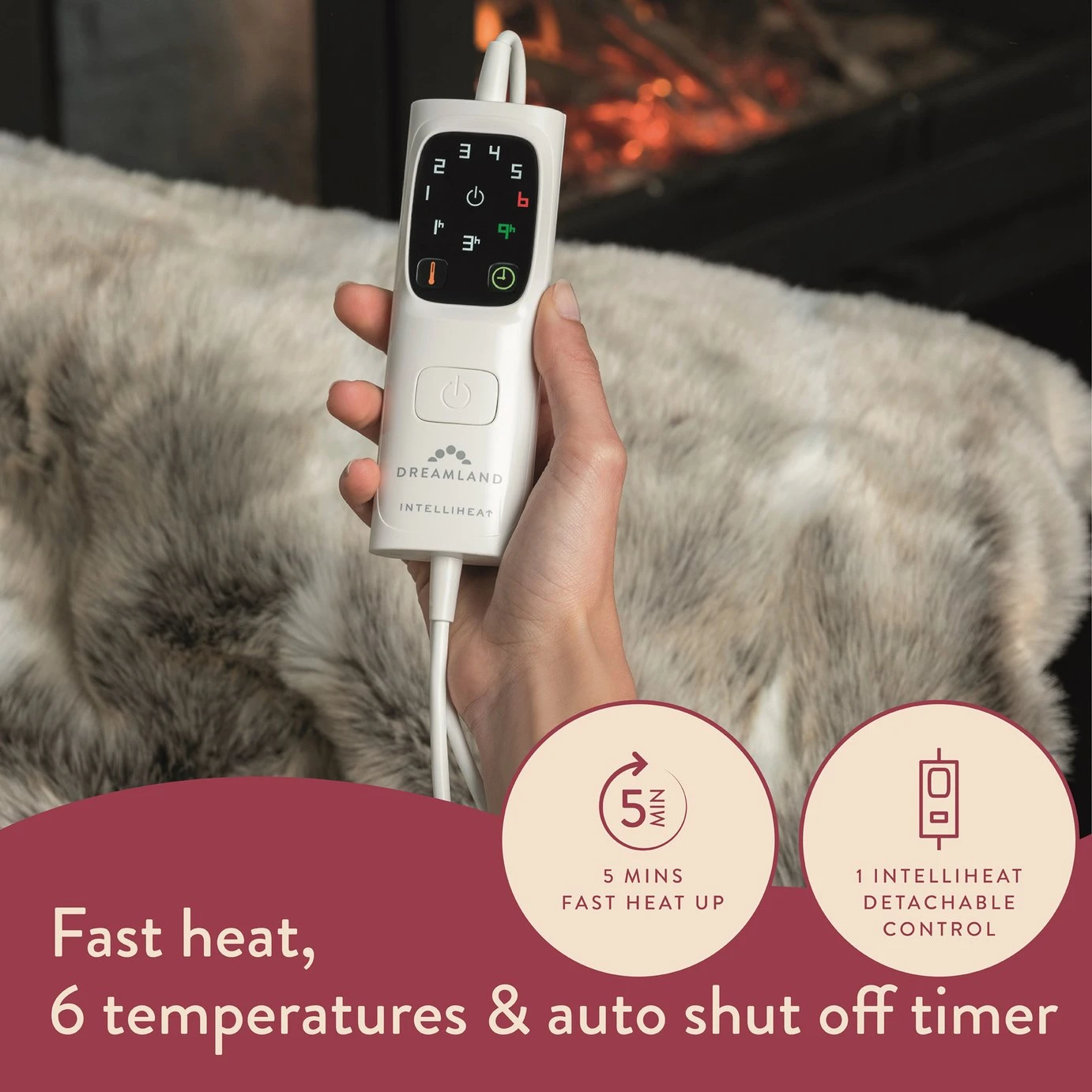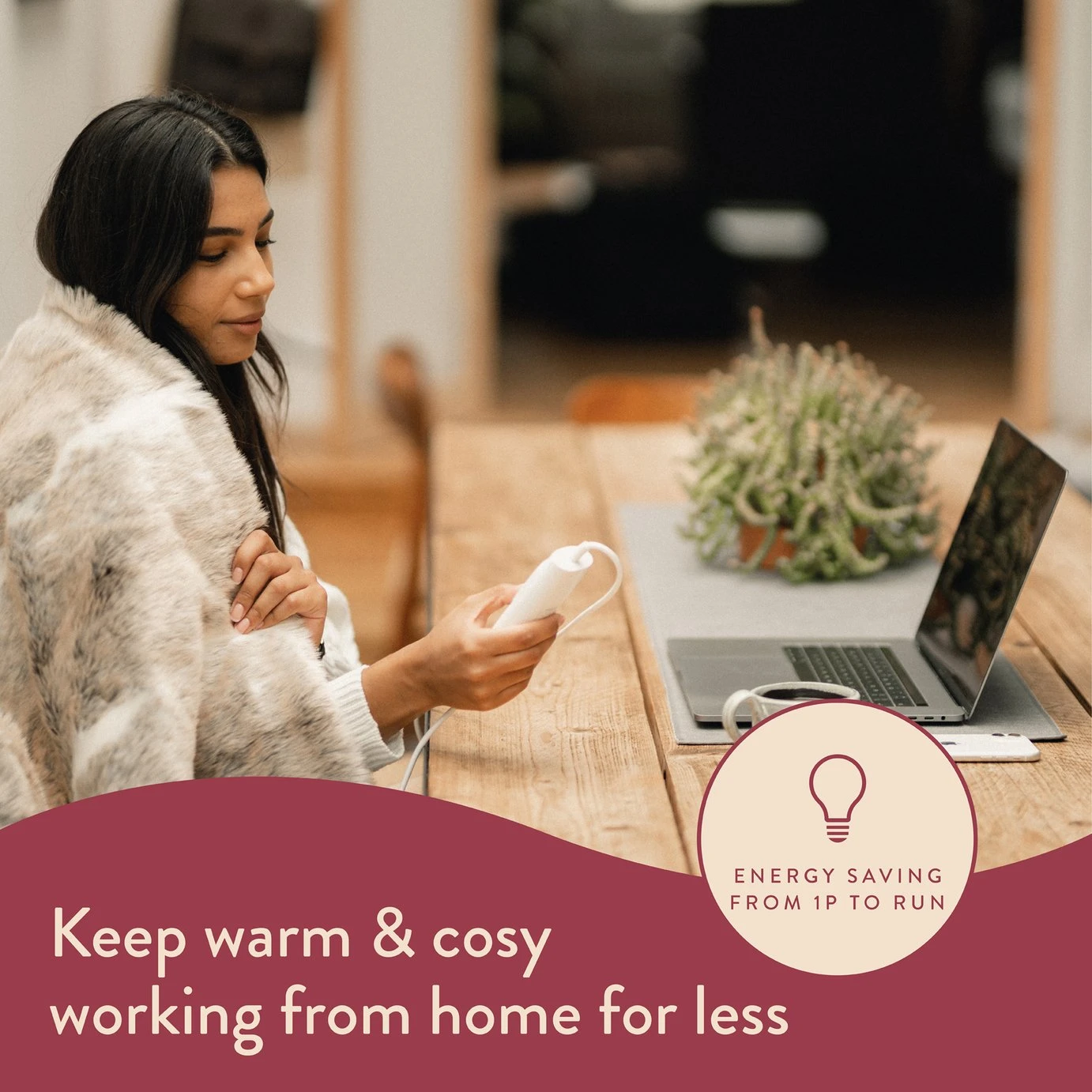 Irresistible to touch so you can wallow in luxury, our warming Alaskan Husky faux fur throw is decadently on-trend. Silky soft and infinitely strokable, it’s perfect for solo snuggling or shared cocooning. It also doubles up as a deluxe living room accessory. 5 minute fast heat up, 6 temperature settings with auto shut off timer. Machine washable and tumble dryer safe; simply detach the digital control. Comes with reusable storage bag and 2 year guarantee. Energy saving, costing from only 1p to run.