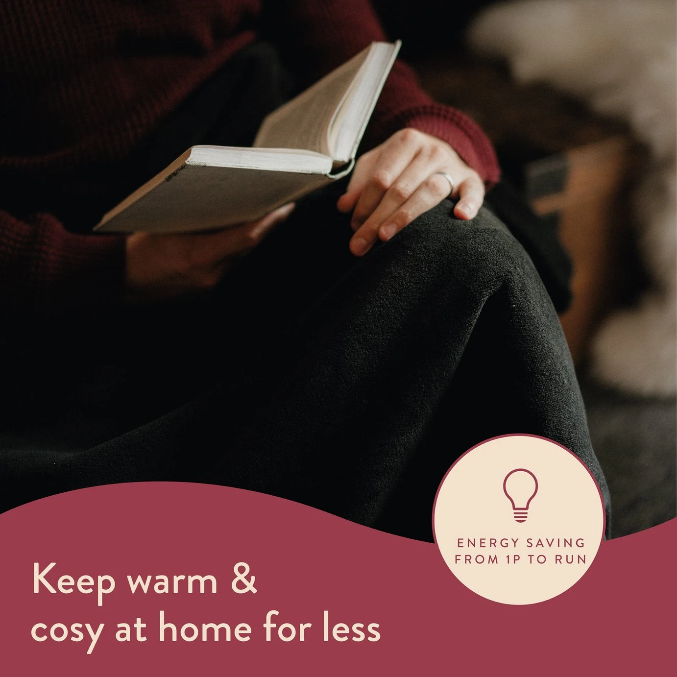 Cocoon yourself in cloud-like comfort with our velvety plush warming Black throw. Super-sized and seriously soft, the strokable texture makes it the perfect solo or shared snuggle companion. And when you’re not requiring the warmth and wellbeing benefits, it doubles up as a stylish living room accessory. 5 minute fast heat up, 6 temperature settings with auto shut off timer. Machine washable and tumble dryer safe; simply detach the digital control. Comes with reusable storage bag and 2 year guarantee. Energy saving, costing from only 1p to run.