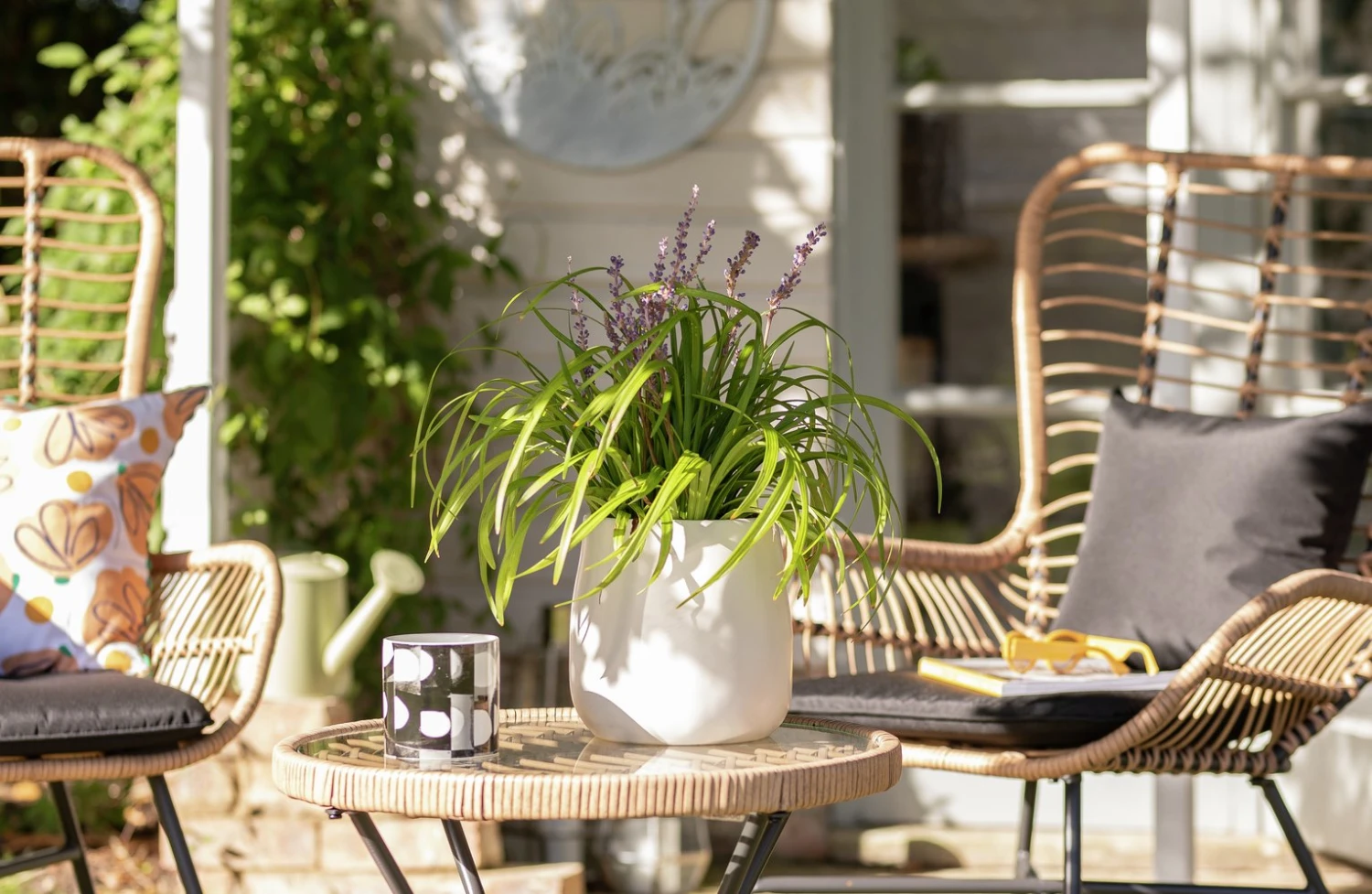 Our curvy white ceramic plant pot with its contrasting dark inner has a hint of the Mediterranean about it. Fill with lush greenery, fresh or faux, and brighten up an outdoor or indoor space.