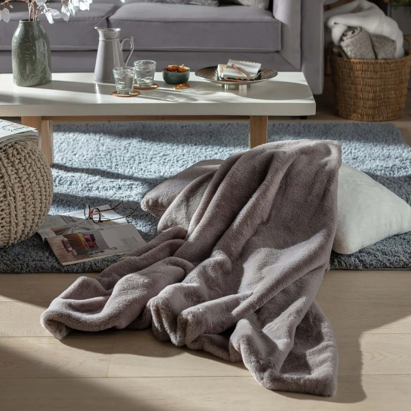 Faux rabbit fur throw Super soft handfeel.