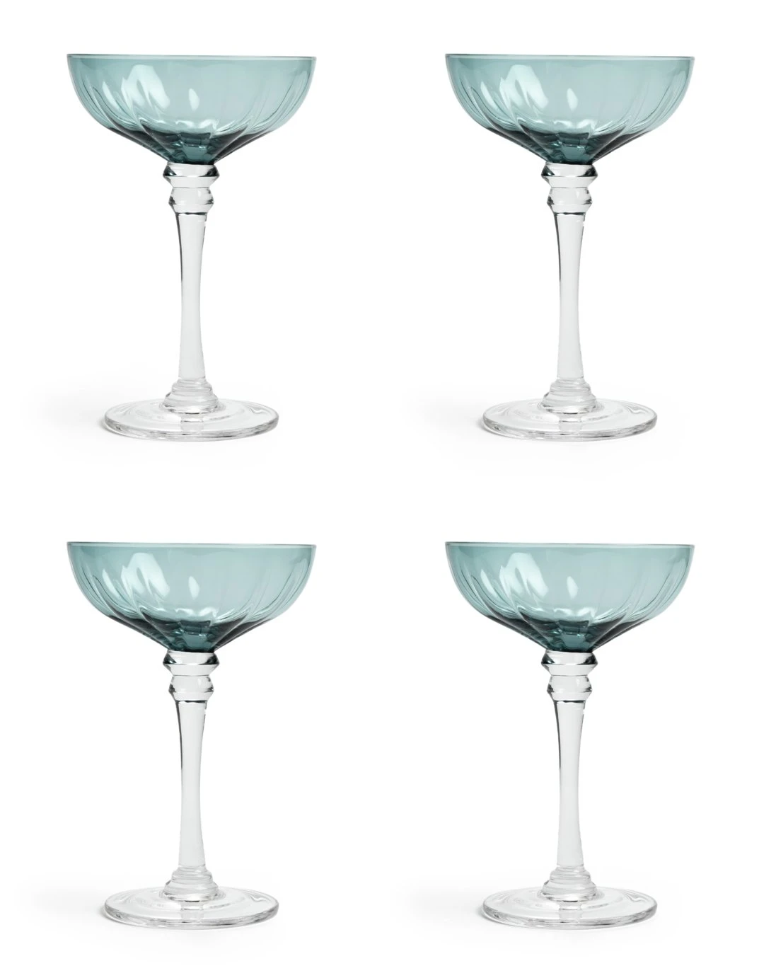 Delightfully decadent. Our pack of 4 champagne coupes are a talking point at the dinner table. Deep teal tinted glass is mouth blown to create these stunning tactile fluted shapes, with clear sculptural stems. Layer with the rest of our Japonica collection to transform your at home bar. They’re fabulous for entertaining and dishwasher safe too. Refill, anyone?
