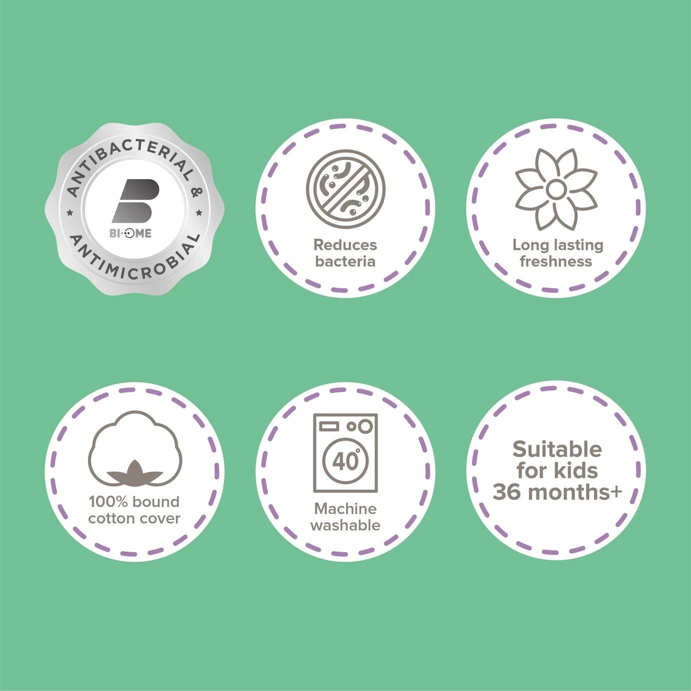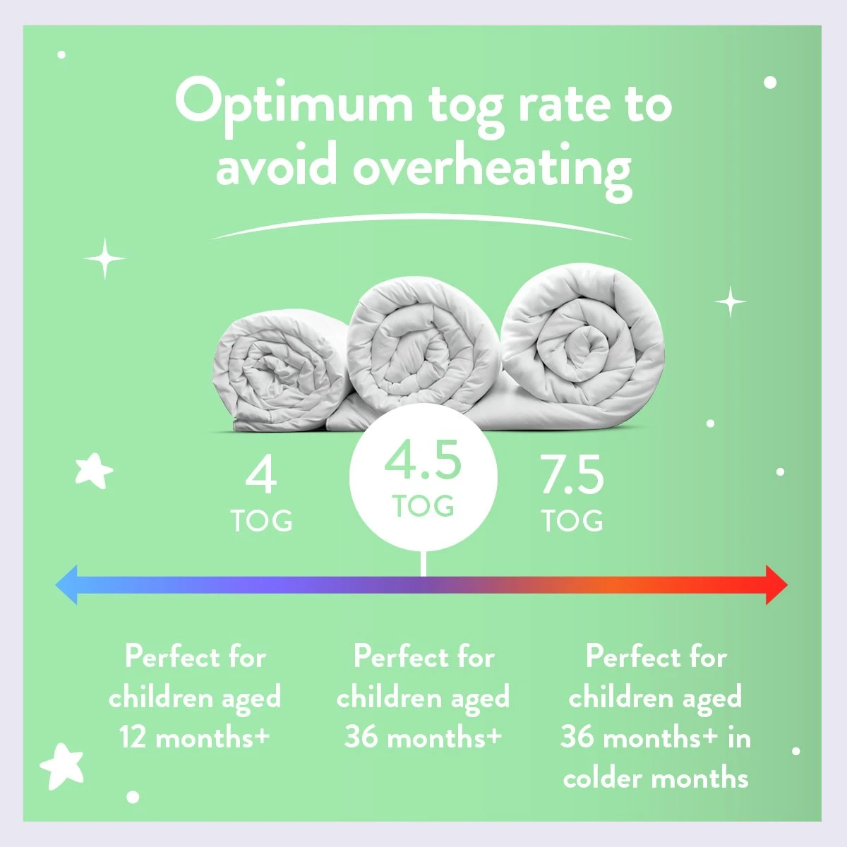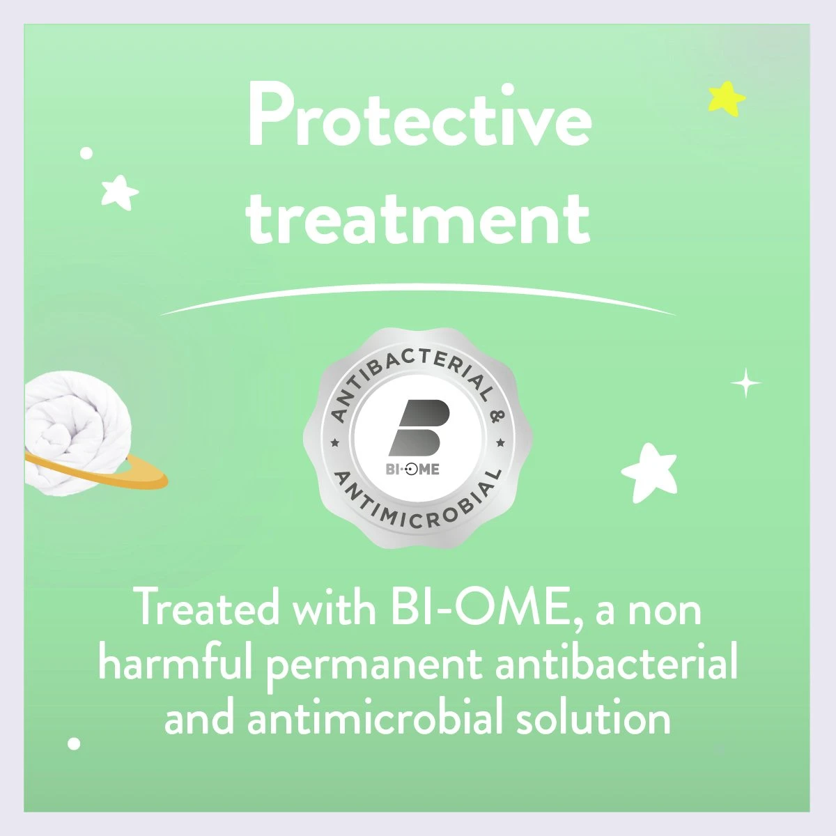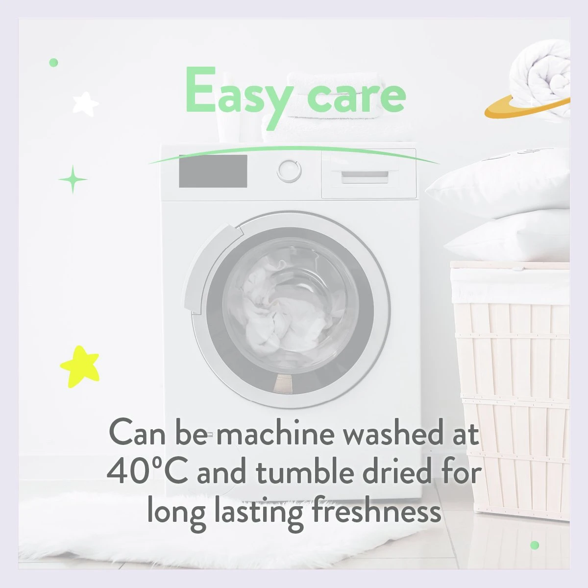 The Slumberdown Little Slumbers Anti Bacterial Cotton duvet has been designed for children. It is carefully formulated with a permanent, antibacterial, antimicrobial, non-harmful odour control treatment, BI-OME® which protects textiles from the build-up of dustmites and odour causing bacteria. The reduced fill ensures your little one won’t overheat at night. Independently tested by experts, so your little ones can enjoy a comfier, fresher and healthier sleep space. What’s more this is Easy Care so can be machine washed and tumble dried.