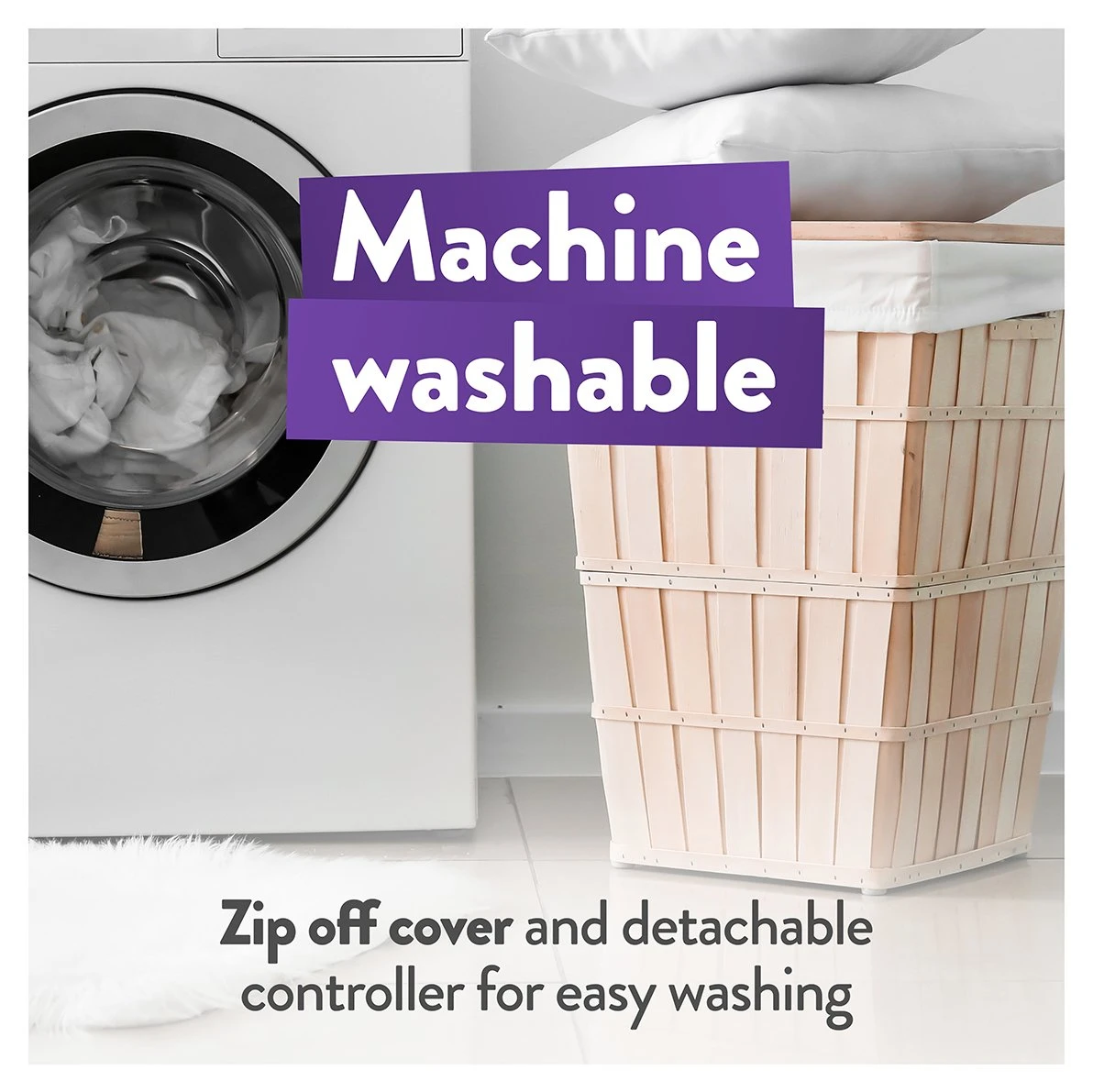This blanket has a soft touch quilted cover which adds a layer of comfort to your bed. Whats more the comfort layer can be zipped off rather than taking off the full blanket, which means its easy care. The reinforced elasticated straps run the full width of your bed ensuring it stays in place night after night. Its easy to use with 3 x heat settings, that can be set for your ideal time period. It’s machine washable, has a low energy consumption and automatic shut off to prevent overheating, giving you complete peace of mind.