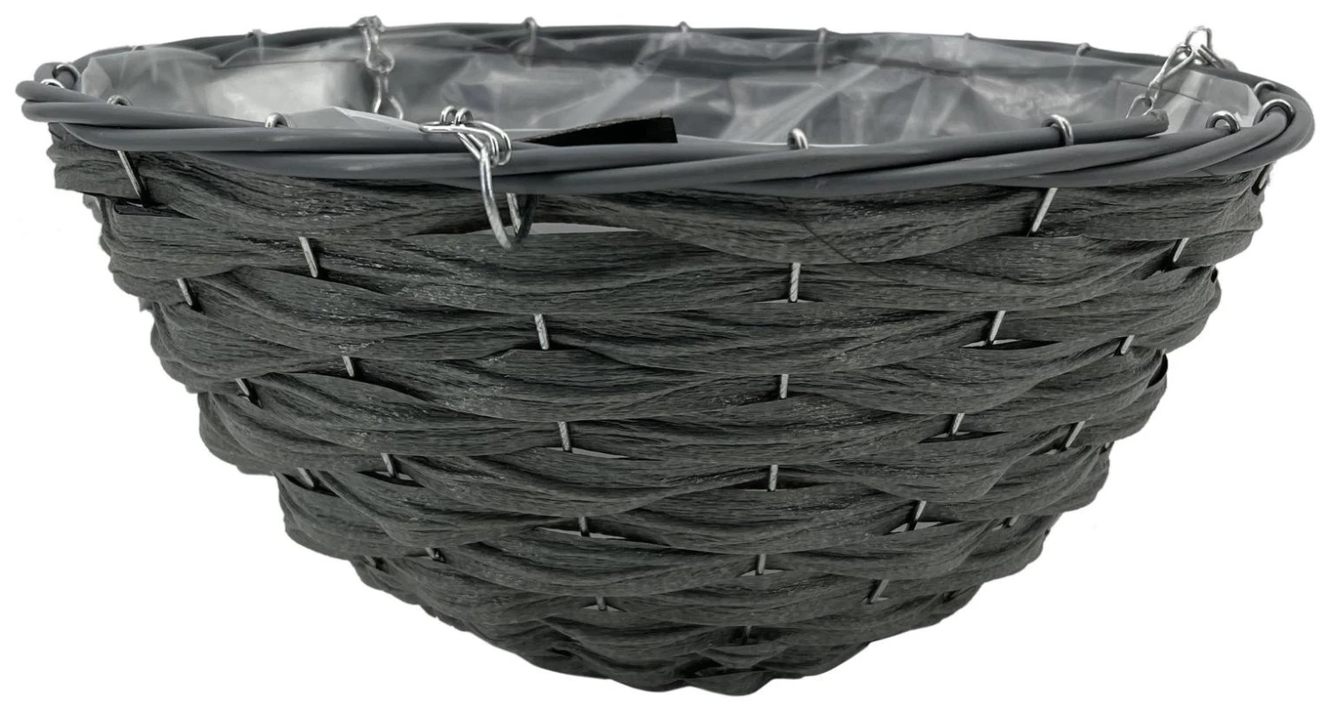 Hang all types of flowers and plants in this contemporary slate hanging basket. Made from durable faux rattan, quality will not deteriorate like natural rattan so is suitable for your outdoor space year-round. The sturdy chain and hook can easily attach to any pole, beam or hook, to create a beautiful display.